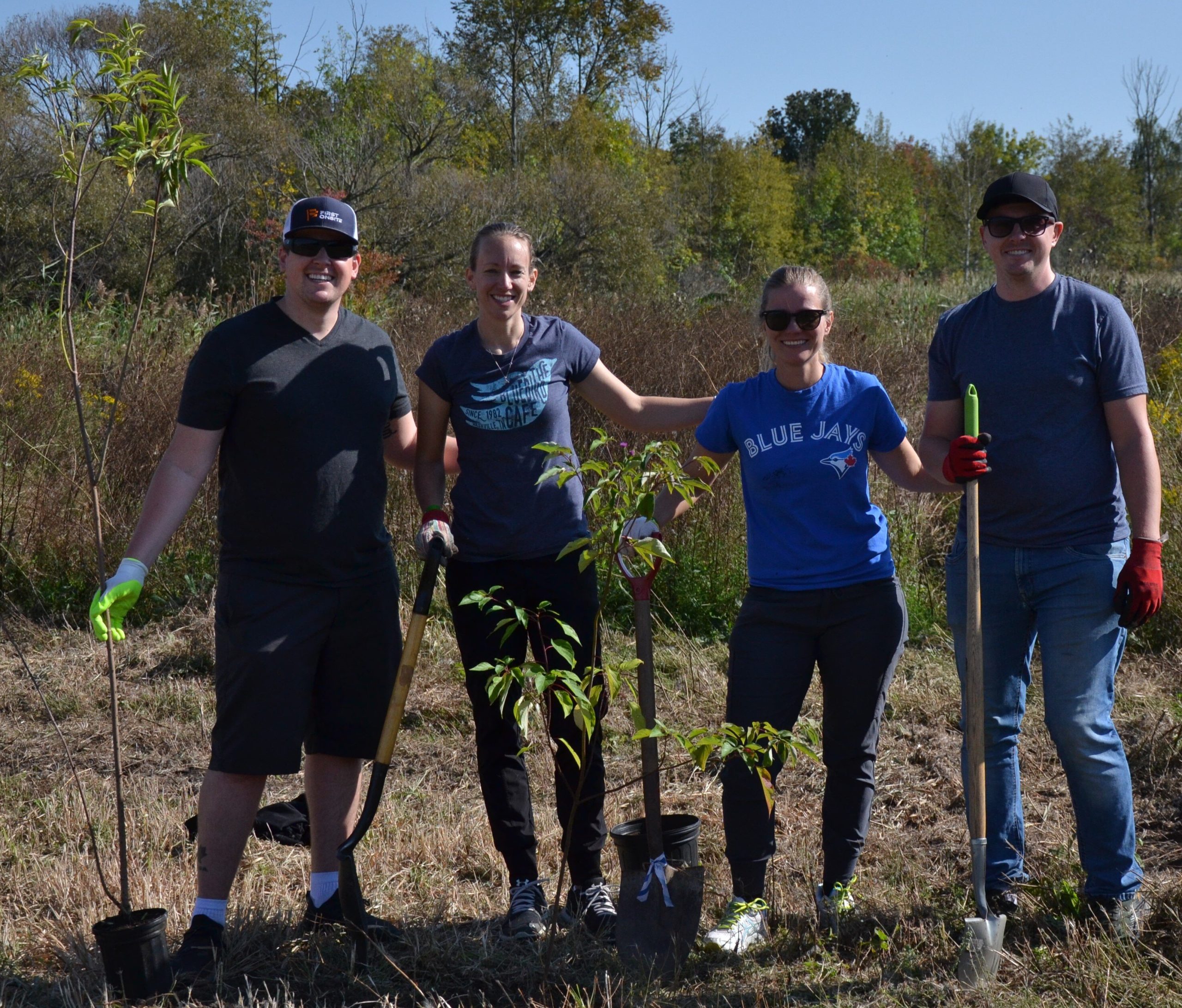In collaboration with Ducks Unlimited Canada and the City of Woodstock, over 80 Cowan Insurance employees, alongside their families and friends, planted trees and assembled turtle logs in efforts to continue vital wetland restoration work.